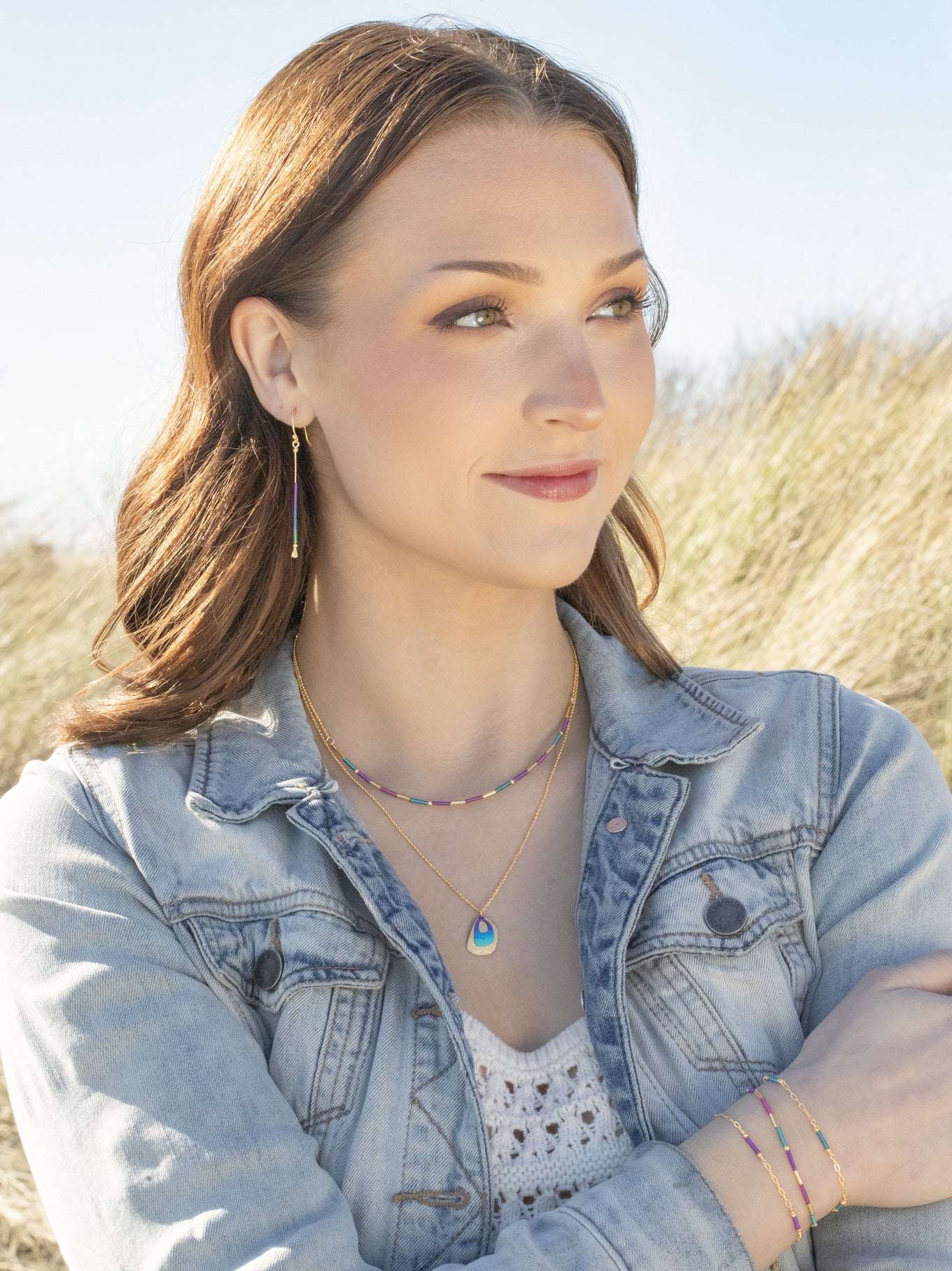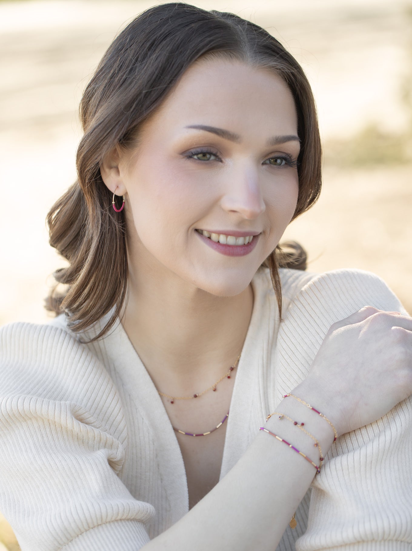 Our Cordoba Bracelet gives a classic chain permission to play, alternating links with vibrant niobium coils and creating a delicate dance of metal and color. A singular sensation on its own, a chorus of lovely when thoughtfully layered.
